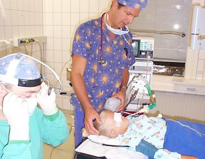 Dr. Thöns leuchtete mit der Lampe in meinen Mund und Lendita hat ihm den kleinen Atemschlauch gegeben.